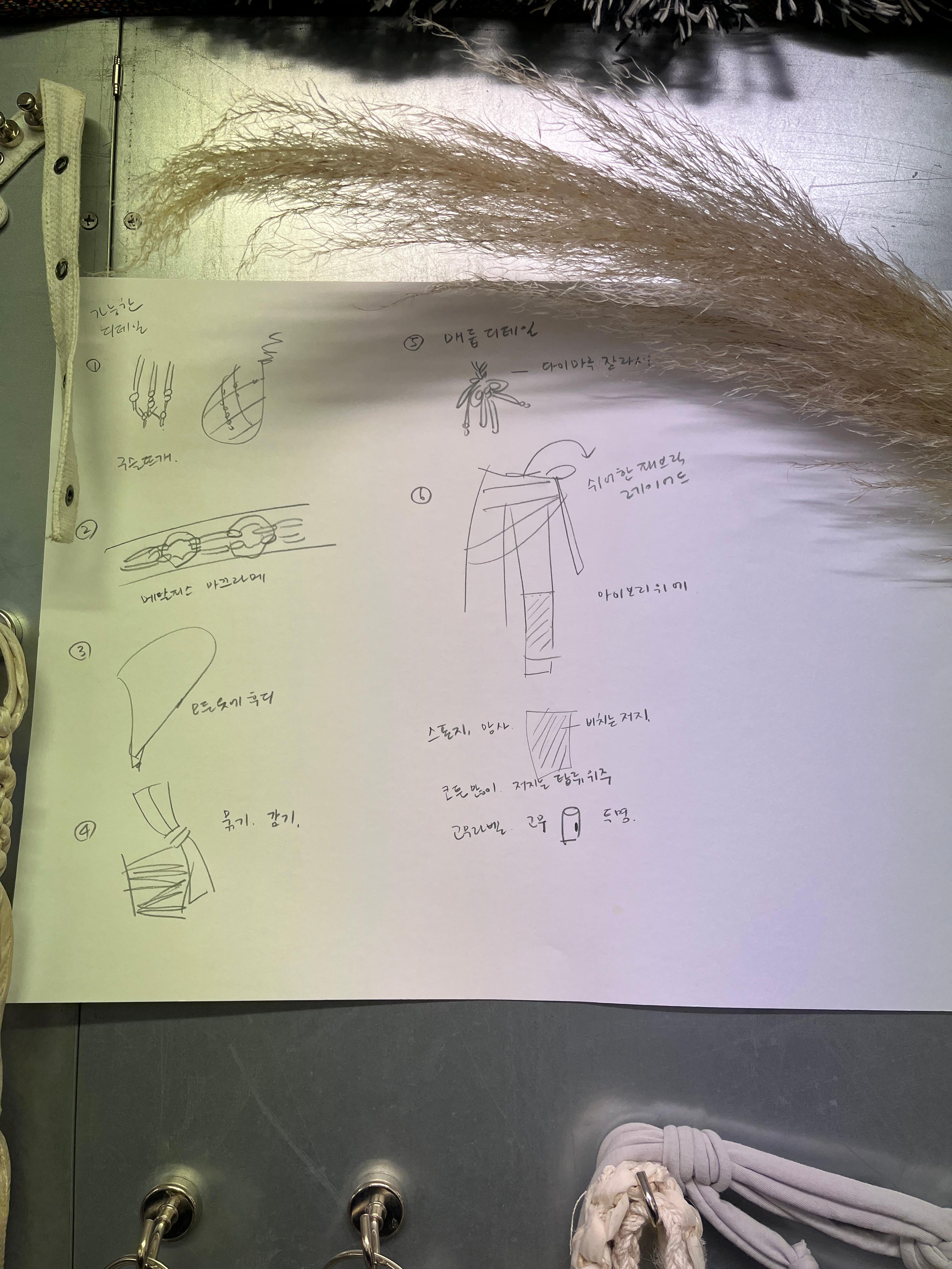 혜인서의 2026 SS 프리뷰를 구경하고 왔다. 6개월 만에 가보는 도산대로 25길. 미래를 생각하게 되는 구조적 패턴과 몸에 달라붙는 핏, 그 위에 쌓이는 레이어링. 그리고 금속 부자재의 파티나, 가먼트 다잉의 흔적들, 불규칙한 페이딩의 자국들. 그리고 매듭. 옷이 시작되는 곳과 이어지는 곳들.
