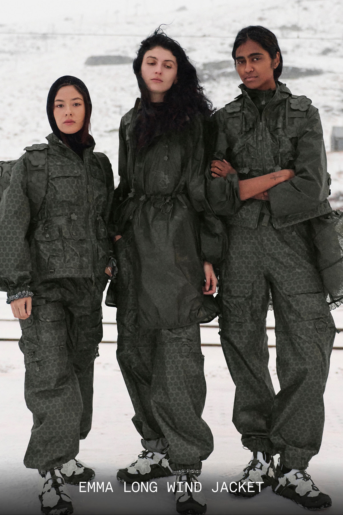 꽃무늬 프린트가 만발해 있지만 언뜻 보면 군대 카무플라주 같다. 어디로부터 무엇을 숨기는지는 모르겠지만 무늬도 그렇고 선택한 옷 종류들도 모두 위장되어 있다.
