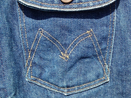 위 매버릭 재킷을 보면서 유의 깊게 봐야할 부분이 있다면 단추의 간격. 마지막 부분이 허리를 잘라내 수선한 듯 간격이 짧다. 원래 그렇다. 또 하나는 양 가슴 주머니 위의 M 모양 자수다. 뭐 재봉틀 붙잡고 계신 분에게 알아서 M자 그려 넣으라고 한 거 같다. 나름 시그니처 로고일텐데 양쪽의 일관성이 전혀 없다. 역시 원래 그렇다. 가지고 있는 건 80년대 제품인데 모양이 정돈되어서 M자가 그냥 두 줄이다. 나중에 와서는 다시 리바이스의 갈매기 자수처럼 가지런하게 겹쳐있는 방식으로 바뀐다.