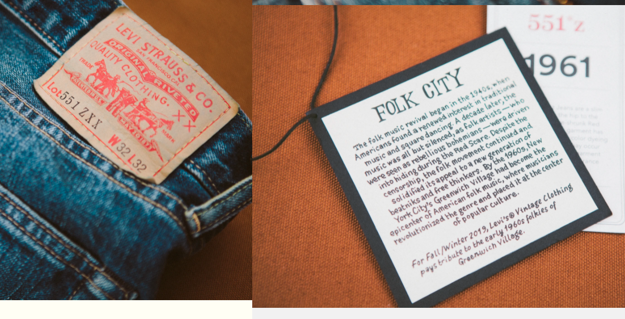 또 리바이스 청바지 주머니에 보면 over 100 years 뭐 이런 게 적혀있는데 아주 오래된 청바지에도 적혀 있었다.