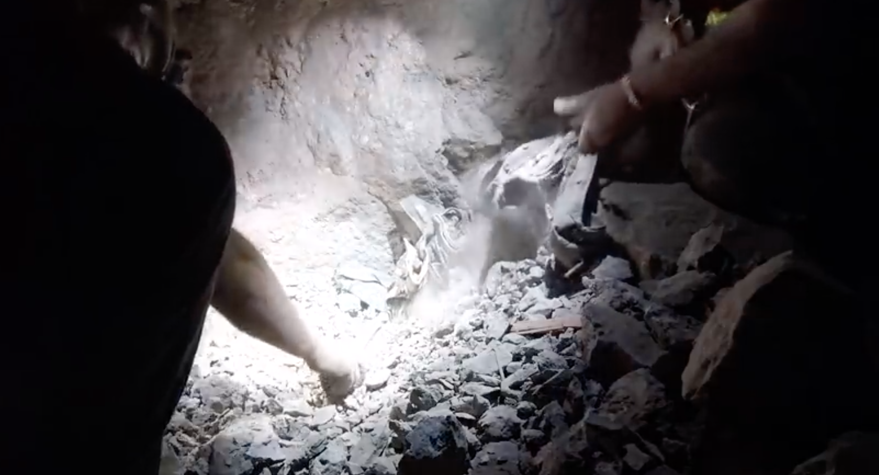 정말 이렇게 모래와 돌 속에서 탈탈 털면서 들어 올림. 약간 궁금한 건 꽤 오랫동안 묻혀 있었을테고 수분도 거의 없는 곳인데 삭지 않았을까? 저렇게 들어 올리면 뜯어지지 않을까? 그리고 왜 광산 안에 청바지가 있을까. 광산 안에서 일하다가 갈아입고 거기에 버렸나? 폐광이 될 때 사람들이 낡은 바지를 버리고 가는 걸까? 뭔가 의문이 많이 생긴다.