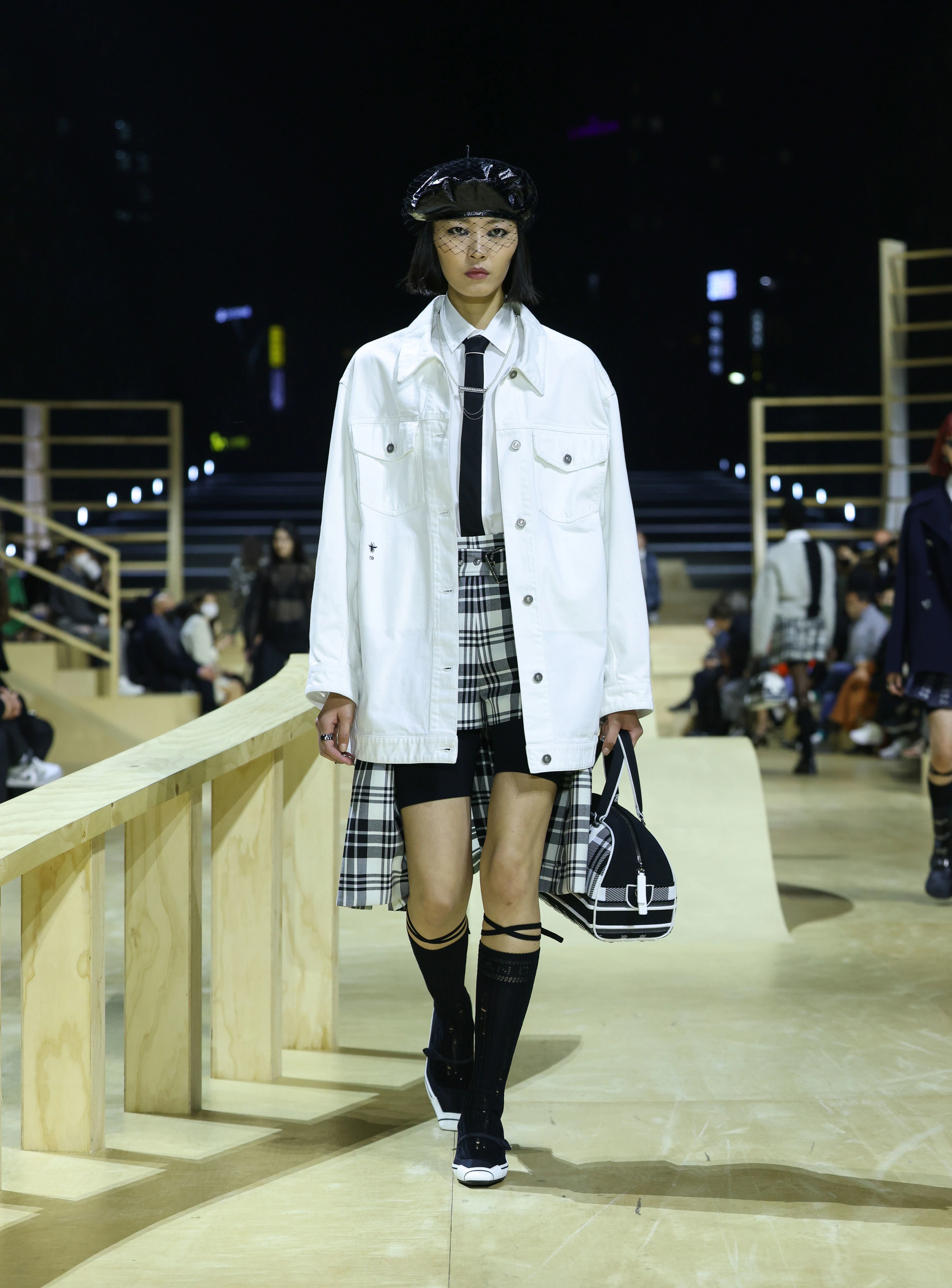 이번 패션쇼는 스케이트 보드에서 시작해 보드장을 오고가는 형태로 진행되었다. 모델이 걷다가 부딪치는 경우를 봤는데 동선이 약간 꼬여있긴 하다. 야외 패션쇼라 그런 건지 바닥 색과 조명 때문에 전반적으로 너무 노랗게 나오는 건 좀 그랬다. 이 컬렉션에는 워크 재킷과 봄버, 운동복과 시스루 드레스, 홀터넥 등등 다양한 형태의 옷이 들어있다. 이 글에서 바라보고자 하는 워크 재킷 류에도 초어 재킷, 커버올 타입 뿐만 아니라 집 자켓, 봄버, 퀼팅 재킷 등 여러가지가 나온다.