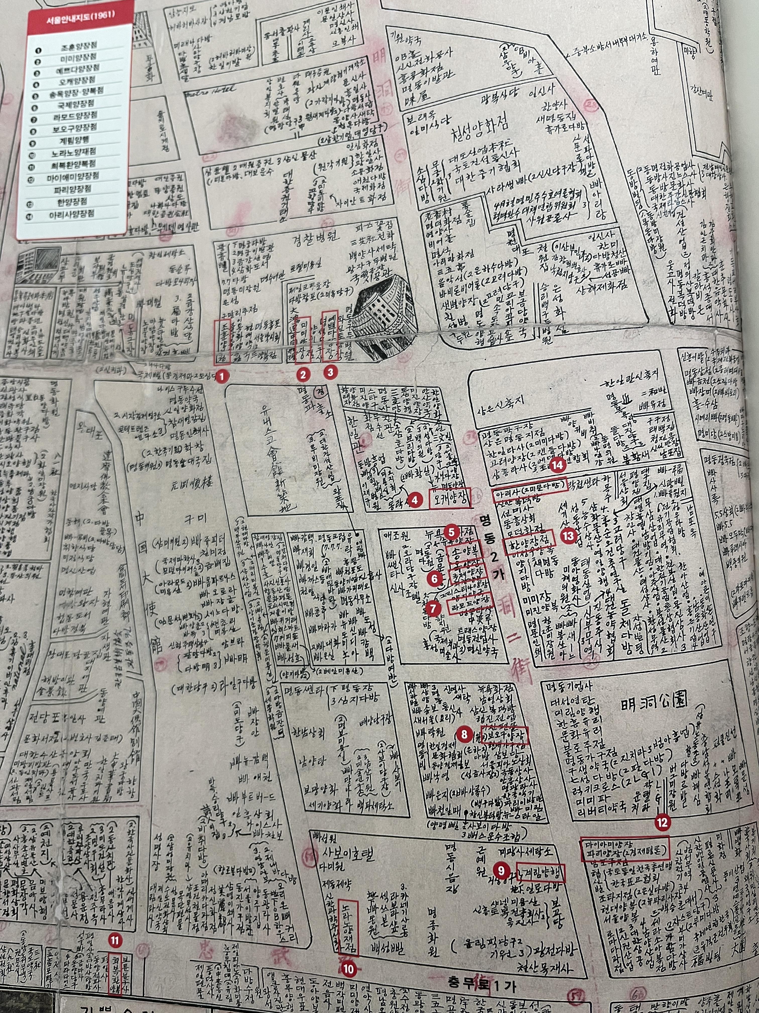 1961년 명동 쇼핑 지도.