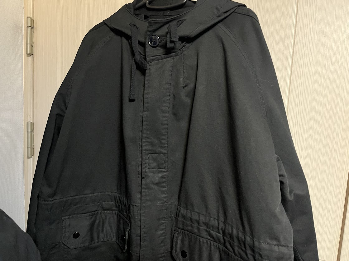 에스피오나지의 M-64 코튼 파카다. 중고로 구입했다. 사실 중고 제품은 대체재를 구할 수 없거나, 보존 가치가 있거나 한 것, 내가 쓰는 이야기와 직접적인 관련이 있는 것 정도만 구입하자고 생각을 하고 있는데 우연히 본 이 옷이 좀 재미있는 거 같고, 저렴하기도 하고, 가지고 있는 옷과 조합으로 용도가 있을 거 같아서 구입하게 되었다.