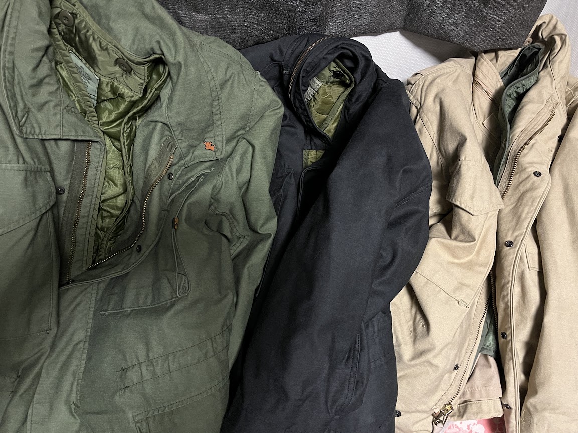 가격 이야기를 해보자면 중고 옷을 많이 보다보면 어느 정도 선이 생긴다. 위 세 벌은 모두 미국 제조 알파 인더스트리의 민수용 M-65인데 레귤러 핏에 밀 스펙과 흡사하게 만들어졌다. 상태와 사이즈 따라 다르겠지만 별 문제 없는 경우 자켓 4만원 대 + 내피 2만원 대 해서 총 구입비 7만 내외가 적정가라고 생각함. 내피는 복제면 1만원 대. 근데 이건 요새 은근 구하기가 까다로워져서 좀 더 비싸도 괜찮다 싶으면 ㅇㅋ. 군대 거면 좀 높아지고 2세대면 대략 10선, 견장 없는 거면 그보다 높게 정도 아닐까 싶다. 그외 제조국의 슬림핏 같은 건 다른 좋은 거 많은데 굳이 이걸이라는 생각. 아무튼 위 가격보다 많이 비싸면 그냥 좀 더 돈 모아서 브론슨 같은 걸 구입하거나 아니면 야상 말고 다른 좋은 아우터 찾는 게 낫다고 생각하고 있음. 중고 옷의 경우엔 인기가 많아서 가격이 치솟거나 하면 그냥 관두는 게 여러모로 마음이 편하다.