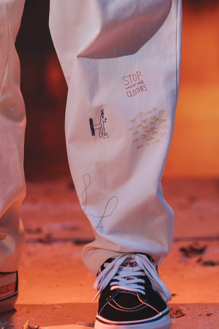 흥미를 끌었던 건 이런 부분. 상당히 옹졸해 보이는 핏의 셋업에 자잘하게 올려진 자수, 뜯어진 실밥. 이건 조금 더 나아가면