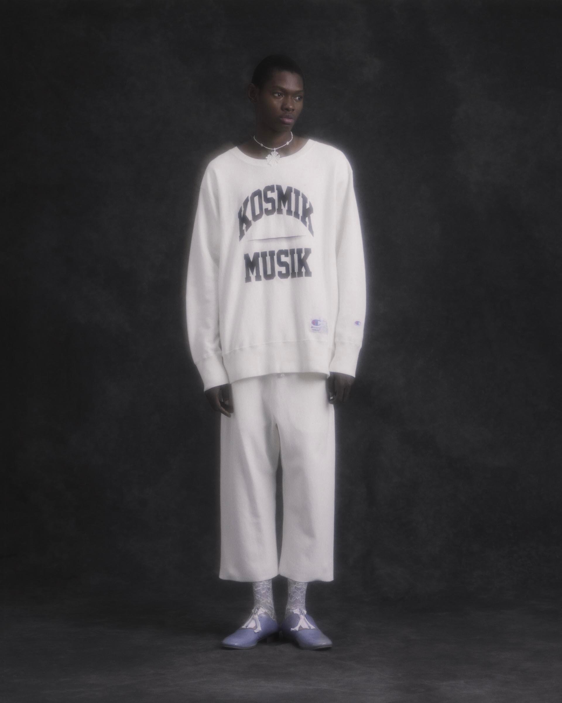 뿌연 콘셉트 사진. CHAOS / BALANCE 시리즈로 리버스 위브에 베이지, 아이보리, 브라운, 블랙 등 컬러, 비즈 로고, 거의 단색인데 KOSMIK MUSIK, CHAOS 그래픽을 넣은 게 있다. 일단 로고가 눈에 띔.