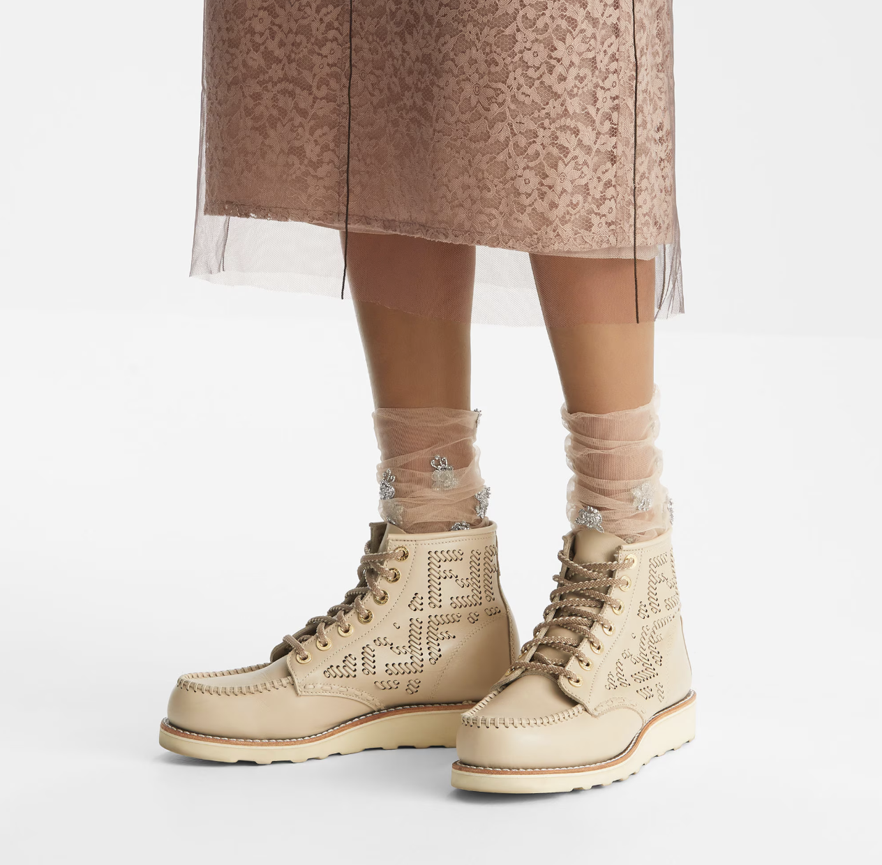 펜디 100주년, 레드윙 120주년을 기념하며 1952년에 나왔던 레드윙의 클래식 목 부츠의 펜디 재해석 버전이 나왔다. 서로 어디서 접점이 있었나 싶은 약간 이상한 조합 같긴 하지만 펜디에 의하면 이 부츠 - 로퍼 하이브리드는 걷기에 적합해 바쁜 여성을 위해 만들어졌고 이 신발이 가진 스포티한 태도는 우아한 이브닝 드레스와 잘 어울린다고 한다. 이게 왜 부츠 - 로퍼 하이브리드인지, 클래식 목 부츠가 정말 걷기에 적합하다고 생각하는 건지, 이브닝 드레스와 잘 어울리는건지 의문이 있긴 한데 생각해보면 크게 중요한 문제는 아니다.