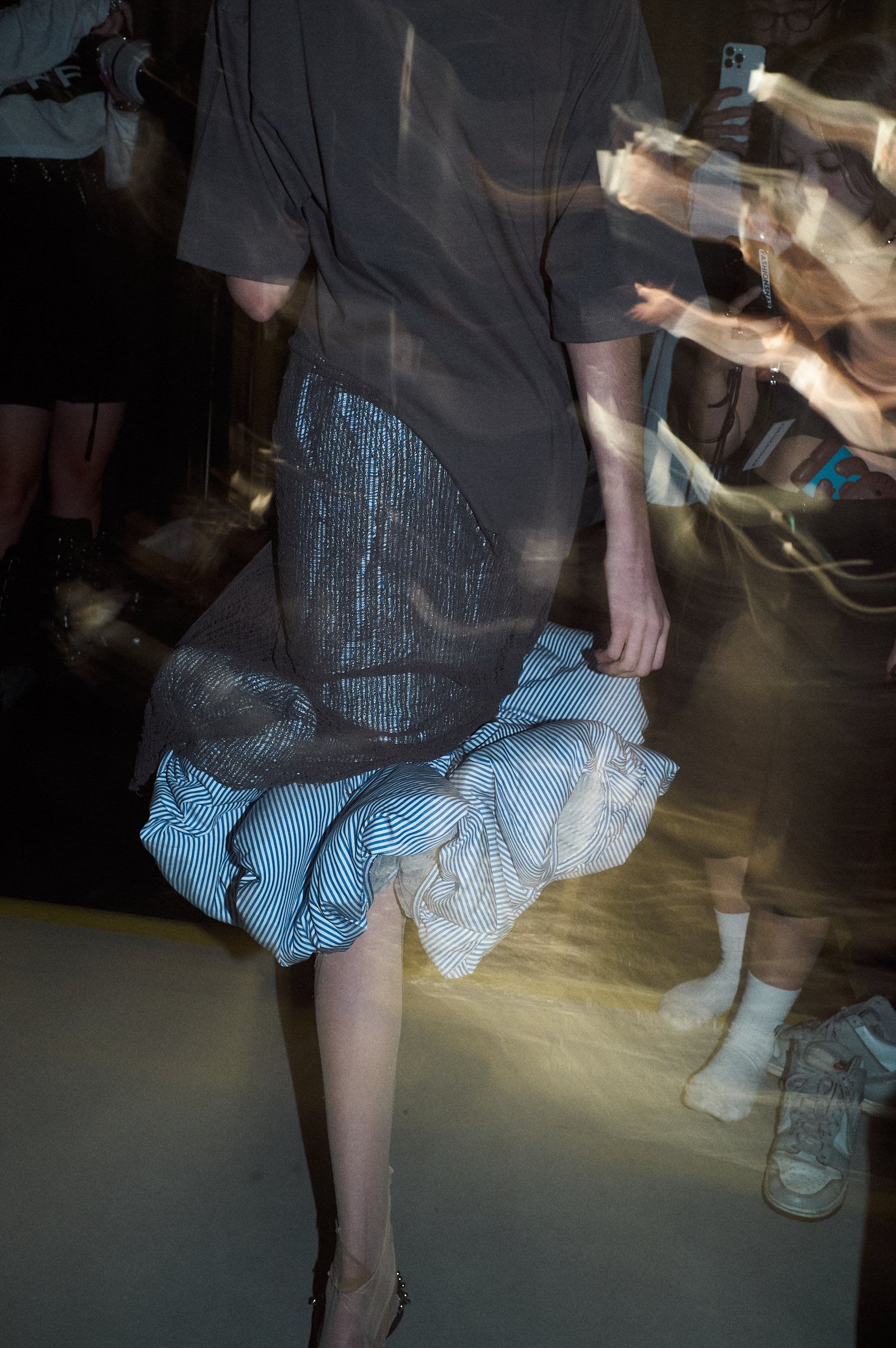 아무튼 이번 2026 SS 컬렉션은 프리젠테이션의 느낌으로 차분하게 진행된다. 그렇다고 패션쇼나 발레 공연 느낌은 아니고 현대 미술관에서 약간 어색하게 연기, 아니 작품의 제작을 완성시키고 있는 퍼포먼스를 보는 느낌이 강하다.