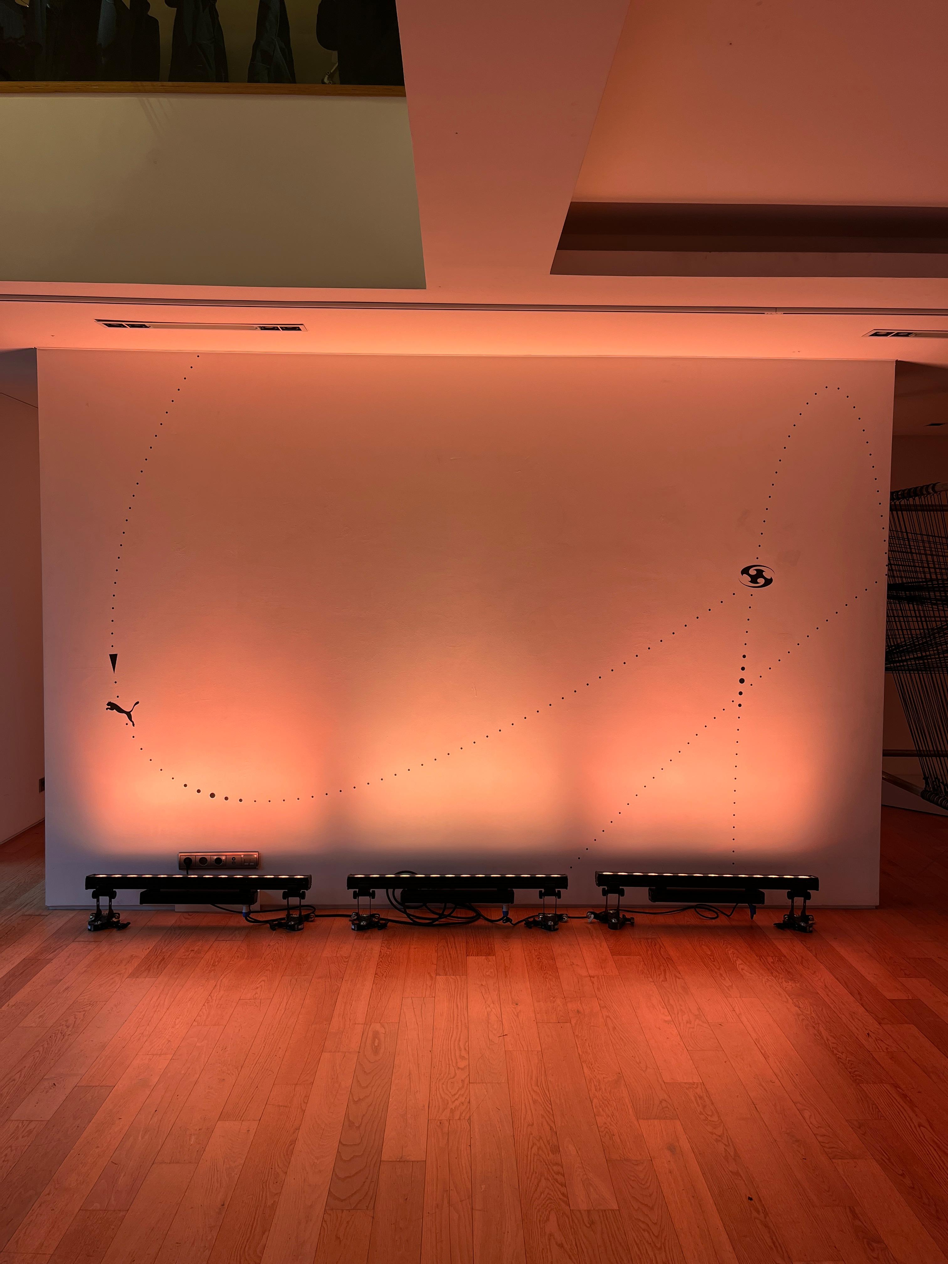 모티브가 된 예전 푸마 제품을 시작으로 B1 - 2 - 1층 순으로 이동하며 선을 따라가도록 되어 있다.